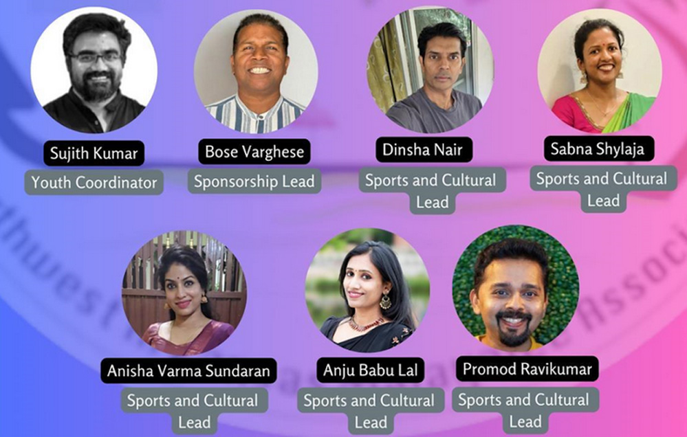 സംഘടനാ നേതൃത്വം: അനൂപ് പ്രസന്ന (പ്രസിഡന്റ്), മീനു രംഗരാജ് (വൈസ് പ്രസിഡന്റ്), നീലേഷ് കൃഷ്ണൻ (സെക്രട്ടറി), സപ്ന രാമചന്ദ്രൻ (ജോയിന്റ് സെക്രട്ടറി), സഞ്ജിത് രാമകൃഷ്ണൻ (ട്രഷറർ), വത്സരാജ് ശിവശങ്കരൻ (ജോയിന്റ് ട്രഷറർ), ലിനീഷ് കുമാർ (പി.ആർ.ഒ), ചിദംബരം ശ്രീകുമാരൻ (ജോയിന്റ് പി.ആർ.ഒ), സുജിത് കുമാർ (യൂത്ത് കോർഡിനേറ്റർ), ബോസ് വർഗീസ് (സ്പോൺസർഷിപ്പ് ലീഡ്), ദിൻഷാ നായർ (സ്പോർട്സ് ആൻഡ് കൾച്ചറൽ ലീഡ്), സബ്ന ശൈലജ (സ്പോർട്സ് ആൻഡ് കൾച്ചറൽ ലീഡ്), അനീഷ വർമ്മ സുന്ദരൻ (സ്പോർട്സ് ആൻഡ് കൾച്ചറൽ ലീഡ്), അഞ്ജു ബാബു ലാൽ (സ്പോർട്സ് ആൻഡ് കൾച്ചറൽ ലീഡ്), പ്രമോദ് രവികുമാർ (സ്പോർട്സ് ആൻഡ് കൾച്ചറൽ ലീഡ്).