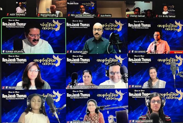 അറ്റ്ലാന്റ: പ്രശസ്ത ഗായകനും വരികളെഴുത്തുകാരനുമായ അറ്റ്ലാന്റ മാർത്തോമാ ചർച്ച് വികാരി റവ. ജേക്കബ് തോമസ് (ആനിക്കാട് അച്ചൻ) നയിച്ച ‘ഫേസ് ടു ഫേസ്’ ലൈവ് സ്ട്രീമിംഗ് സംഗീത നിശ ഭക്തിസാന്ദ്രമായി സമാപിച്ചു.സ്വർഗീയ നാദം കൂട്ടായ്മ ജനുവരി 25 ഞായറാഴ്ച വൈകിട്ട് നടന്ന പരിപാടിയിൽ ലോകത്തിന്റെ വിവിധ ഭാഗങ്ങളിൽ നിന്നുള്ള സംഗീതപ്രേമികൾ സൂം (Zoom) പ്ലാറ്റ്ഫോമിലൂടെ പങ്കെടുത്തു.