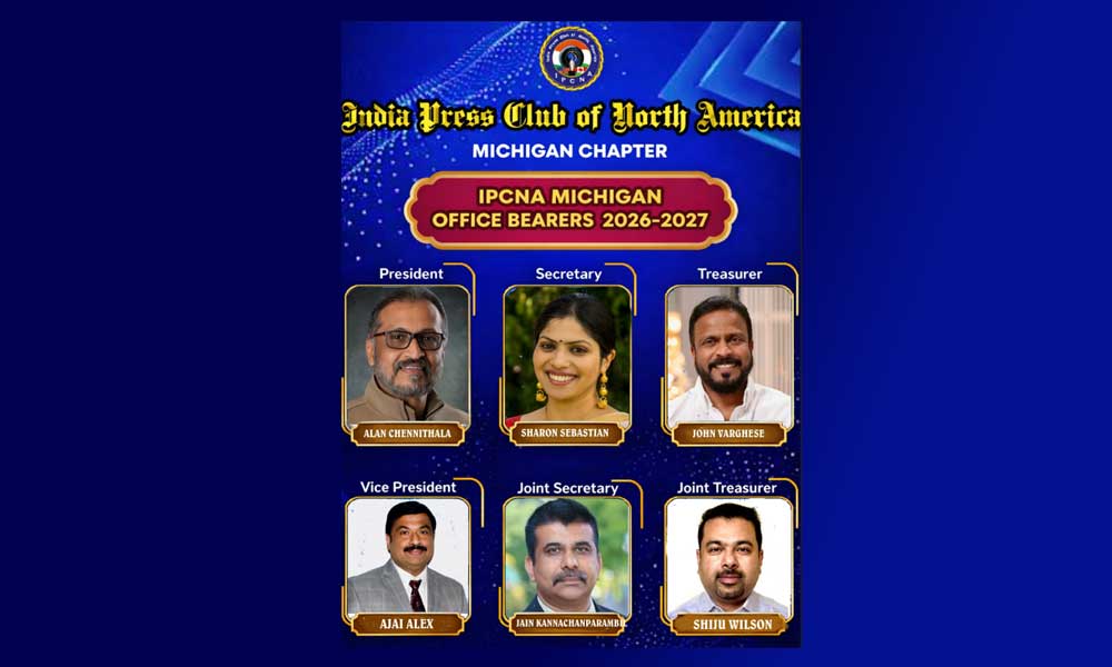 മിഷിഗൺ: നോർത്ത് അമേരിക്കയിലെ മലയാളി മാധ്യമ പ്രവർത്തകരുടെ കൂട്ടായ്മയായ ഇന്ത്യ പ്രസ്സ് ക്ലബ്ബ് ഓഫ് നോർത്ത് അമേരിക്കയുടെ മിഷിഗൺ ചാപ്റ്ററിന്റെ 2026-2027 വർഷത്തേക്കുള്ള ഭാരവാഹികളെ ഗാർഡൻ ഫ്രഷ് കഫേയിൽ കൂടിയ മീറ്റിങ്ങിൽ വെച്ചു തിരഞ്ഞെടുത്തു.