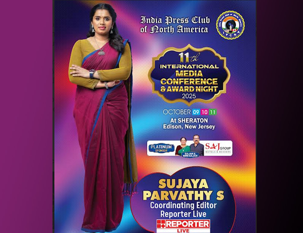 ന്യൂ യോർക്ക് : അടുത്ത വാരാന്ത്യത്തിൽ, ഒക്ടോബർ 9-10-11 തീയതികളിൽ ന്യൂ ജേർസി എഡിസണിലെ ഷെറാട്ടൺ ഹോട്ടലിൽ നടക്കുന്ന ഇന്ത്യ പ്രസ് ക്ലബ് ഓഫ് നോർത്ത് അമേരിക്കയുടെ ത്രിദിന അന്താരാഷ്ട്ര മാധ്യമ സമ്മേളനത്തിൽ സുജയ പാർവതി പങ്കെടുക്കുന്നു. വിട്ടുവീഴ്ചയില്ലാത്ത നിലപാടുകൾ കൊണ്ടും, വാർത്താ അവതരണ ശൈലികൊണ്ടും മലയാള ടിവി ചാനൽ രംഗത്ത് വേറിട്ട് നിൽക്കുന്നു സുജയ, വിവിധ ചാനലുകളിലൂടെ അവരുടെ ശക്തമായ അവതരണശൈലി ജനങ്ങൾ കണ്ടറിഞ്ഞു. സുജയ പാർവതിയെപ്പോലെ സ്വതന്ത്രാഭിപ്രായം പറയാൻ മടിക്കാത്തവർ ചുരുക്കമെന്നു തന്നെ പറയാം.