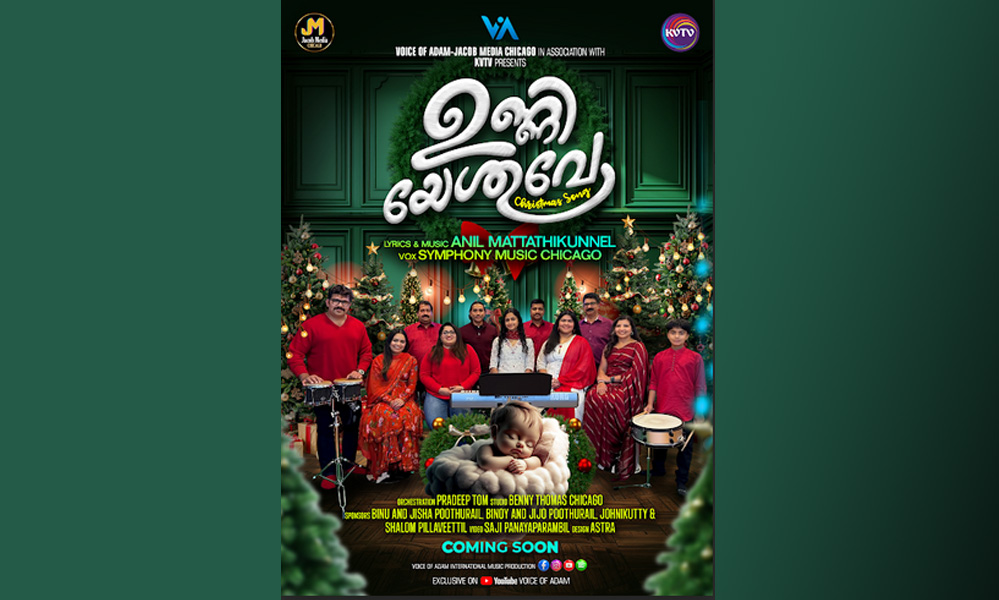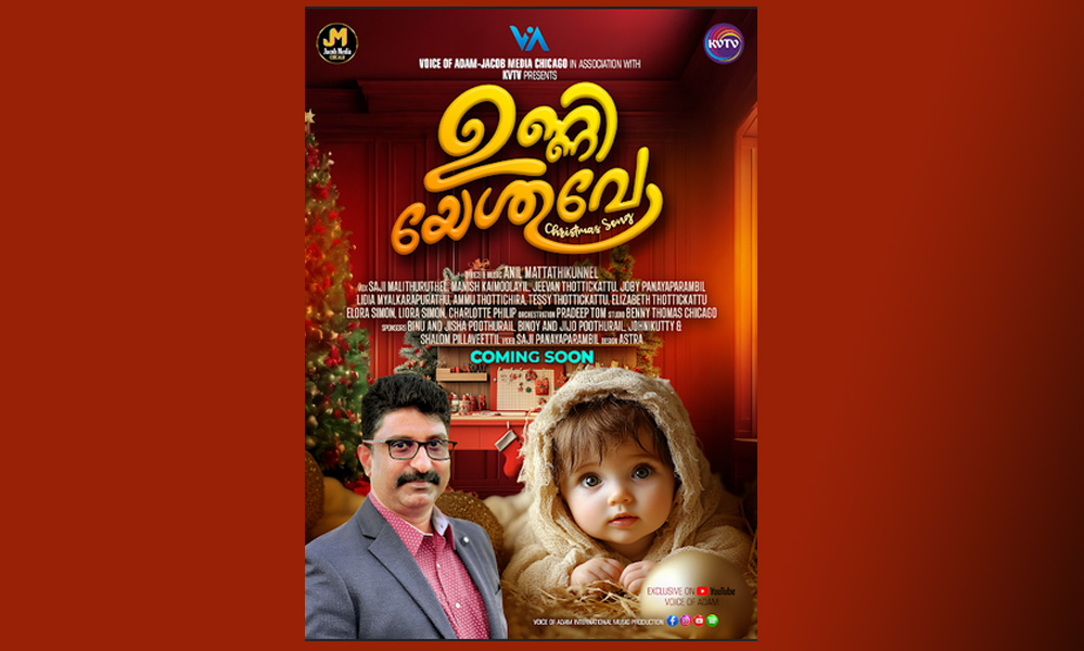 HomeAmerica'ഉണ്ണിയേശുവെ' ഏറ്റവും പുതിയ ക്രിസ്മസ് കരോൾ ഗാനം ചിക്കാഗോയിൽ നവംബർ 15 ശനിയാഴ്ച പുറത്തിറങ്ങുന്നു.