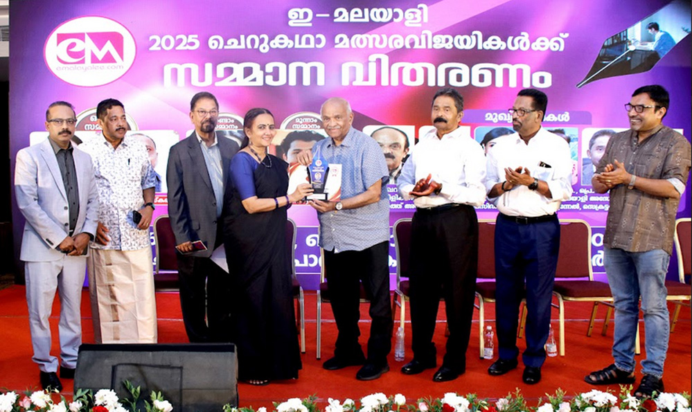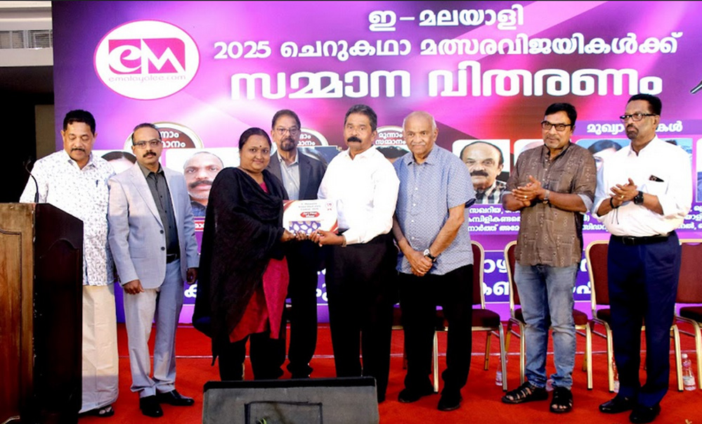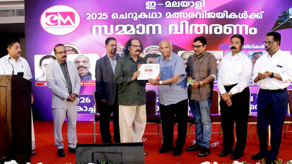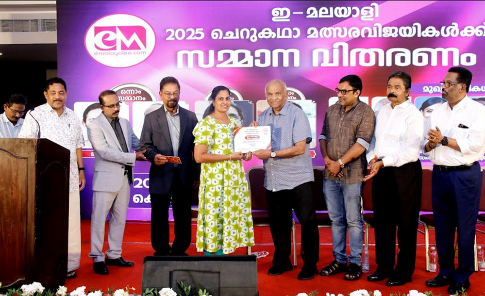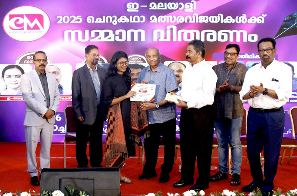 കൊച്ചി: മലയാള സാഹിത്യത്തിലെ സര്ഗ പ്രതിഭകളും എഴുത്തിനെ ഒരു തപസ്യ പോലെ നെഞ്ചേറ്റിയവരും അനുവാചകരും സംഗമിച്ച വേദിയില് അമേരിക്കന് മലയാളികളുടെ ജനപ്രിയ ഓണ്ലൈന് പോര്ട്ടലായ ഇ മലയാളി നടത്തിയ 2025-ലെ ചെറുകഥാ മത്സര വിജയികള്ക്കുള്ള പുരസ്കാരങ്ങള് സമ്മാനിക്കപ്പെട്ടു. കൊച്ചി ഗോകുലം പാര്ക്ക് കണ്വന്ഷന് സെന്ററില് നടന്ന ലളിതമായ ചടങ്ങില് ലോകോത്തര ഓങ്കോളജിസ്റ്റും അമേരിക്കയില് മലയാള ഭാഷയുടെ അംബാസിഡറുമായ ഡോ. എം.വി പിള്ളയുടെയും മലയാള സാഹിത്യത്തിന് വിലപ്പെട്ട സംഭാവനകള് നല്കിയ പ്രമുഖ ചെറുകഥാകൃത്തും നോവലിസ്റ്റുമായ സക്കറിയയുടെയും സാന്നിധ്യം അനുഗ്രഹീതമായി.