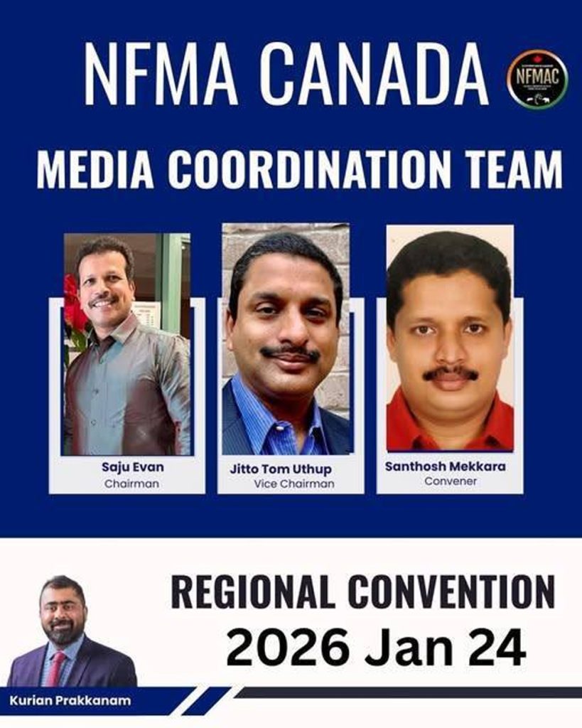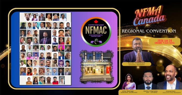 കാനഡയിലെ മലയാളി സംഘടനകളുടെ ദേശീയ കൂട്ടായ്മയായ NFMA canada പുതു ചരിത്രത്തിലേക്ക്. കാനഡയിലെ വലുതും ചെറുതുമായ സംഘടനകളെ എല്ലാം ഒരു കുടക്കീഴിൽ കോര്ത്തിണക്കി രൂപീകൃതമായ NFMAC കാനഡ എന്ന സംഘടന അതിന്റെ ചരിത്ര പരമായ ചുവടു വെയ്പ്പിലേക്ക് നീങ്ങുന്നു . ചരിത്രത്തിലാദ്യമായി ഒന്റാരിയൊ പ്രൊവിന്സില് എന് എഫ് എം എ റീജിനല് കണ്വെന്ഷന് സംഘടിപ്പിക്കുന്നു. കിച്ചനറിലെ ക്രൌണ് പ്ലാസ്സാ ഹോട്ടലില് വെച്ചാണ് 2026 ജനുവരി 24 നു സംഘടനയുടെ ആദ്യ റീജിയനല് കണ്വെന്ഷന് നടക്കുന്നത്. ഏതാനും വര്ഷങ്ങള്ക്ക് മുന്പ് പത്മശ്രീ ഡോ എം എ യൂസഫലി ഓണ്ലൈന് ആയി സംഘടനയുടെ ഉത്ഘാടനം നിര്വഹിച്ചെങ്കിലും ഇതാദ്യമായാണ് സംഘടനകള് ഒത്തൊരുമിച്ചു ഒരു കണ്വെന്ഷനു തയ്യാറാകുന്നത്.
