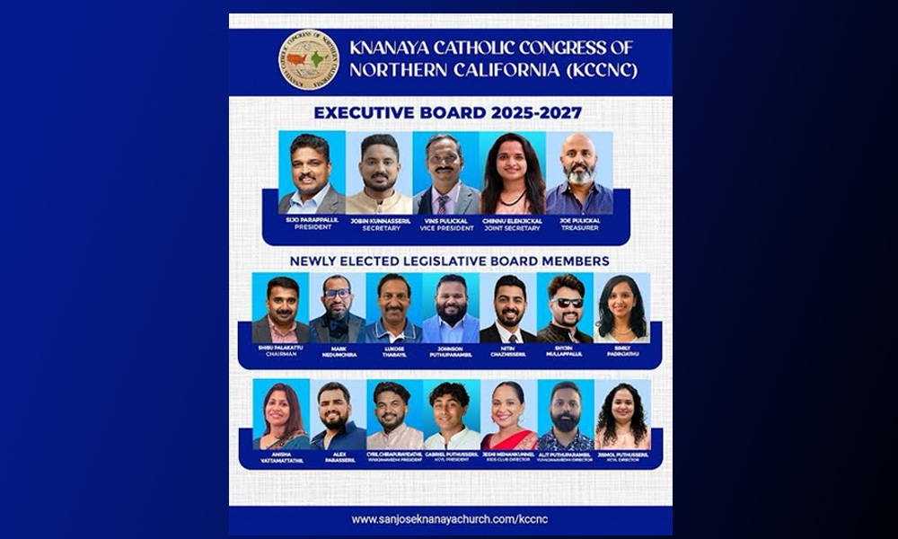 സാൻ ഹോസെ: കെ.സി.സി.എൻ.സി.യുടെ വാർഷിക ജനറൽ ബോഡി യോഗത്തിനു ശേഷം 2025–2027 കാലയളവിലേക്കുള്ള പുതിയ എക്സിക്യൂട്ടീവ് ബോർഡും ലെജിസ്ലേറ്റീവ് ബോർഡും തെരഞ്ഞെടുക്കപ്പെട്ടു.