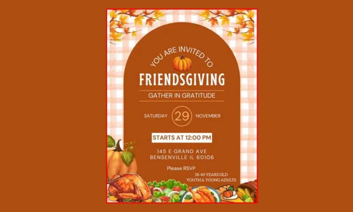 ചിക്കാഗോ: ബെൻസൻവിൽ തിരുഹൃദയ ക്നാനായ കത്തോലിക്കാ ഇടവകയിൽഫ്രണ്ട്സ്ഗിവിങ് നടത്തപ്പെടുന്നു. ചിക്കാഗോ സെന്റ് മേരീസ്, സേക്രഡ് ഹാർട്ട് ഇടവകകളിലെ 18 വയസിനുമുകളിൽ പ്രായമുള്ള യുവജനങ്ങളെയും യങ് കപ്പിൾസിനെയും ഉദ്ദേശിച്ചാണ് താങ്ക്സ്ഈഗിവിങ്ങിനോടനുബന്ധിച്ച് ഫ്രണ്ട്സ്ഗിവിങ് കൂട്ടായ്മ സംഘടിപ്പിച്ചിരിക്കുന്നതെന്ന് ബെൻസൻവിൽ ഫൊറോനാ വികാരി ഫാ. എബ്രാഹം കളരിക്കൽ അറിയിച്ചു.