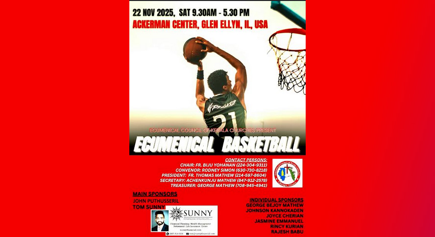 ചിക്കാഗോ എക്കുമെനിക്കൽ കൗൺസിലിന്റെ ആഭിമുഖ്യത്തിൽ നടത്തപ്പെടുന്ന ബാസ്കറ്റ് ബോൾ ടൂർണമെന്റിന്റെ ഒരുക്കങ്ങൾ പൂർത്തിയായതായി ഭാരവാഹികൾ അറിയിക്കുന്നു.
