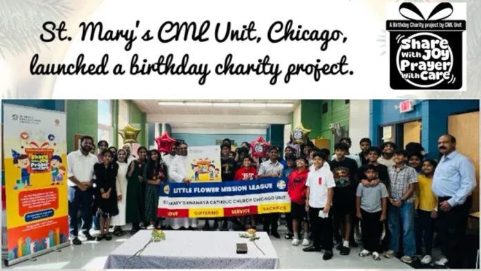 ചിക്കാഗോ: ചിക്കാഗോ സെന്റ് മേരീസ് ക്നാനായ കത്തോലിക്കാ ദേവാലയത്തിലെ ചെറുപുഷ്പ മിഷൻ ലീഗ് (CML) യൂണിറ്റ്, “Share with Joy, Prayer with Care” എന്ന തീമിനെ ആധാരമാക്കി ജന്മദിനങ്ങളെ കരുണയും സേവനവും നിറഞ്ഞ ദിനങ്ങളാക്കുന്ന ഒരു പുതിയ ചാരിറ്റി പദ്ധതിക്ക് തുടക്കം കുറിച്ചു. ഈ പദ്ധതി ഒക്ടോബർ 4 ന് ക്നാനായ റീജിയൺ വികാർ ജനറൽ ഫാ.തോമസ് മുളവനാൽ ചിക്കാഗോ സെന്റ് മേരീസ് ക്നാനായ കത്തോലിക്കാ പള്ളിയിൽ സിഎംഎൽ വാർഷിക പൊതുയോഗത്തോടനുബന്ധിച്ച് ഔദ്യോഗികമായി ഉദ്ഘാടനം ചെയ്തു. ഉദ്ഘാടനത്തിന് മുന്നോടിയായി സിഎംഎൽ യൂണിറ്റ് ഡയറക്ടർ ജോജോ അനാലിൽ ഈ പദ്ധതിയെ കുറിച്ചുള്ള വിശദാംശങ്ങൾ കുട്ടികൾക്ക് പറഞ്ഞുകൊടുത്തു. ഒക്ടോബർ അഞ്ചാം തീയതി ഇടവകയിലെ പ്രധാന വിശുദ്ധ കുർബാനിക്ക് ശേഷം സിഎംഎൽ വൈസ് പ്രസിഡൻറ് Abigail Kandachanparambil ഈ പദ്ധതി ഇടവക സമൂഹത്തിന് പരിചയപ്പെടുത്തി. “നമ്മളെല്ലാവരും നമ്മുടെ ജന്മദിനങ്ങൾ സന്തോഷത്തോടെ വ്യത്യസ്തങ്ങളായ രീതിയിൽ ആഘോഷിക്കുന്നു. പക്ഷേ ഈ ദിനങ്ങൾ ആഘോഷിക്കാൻ സാധിക്കാത്ത ധാരാളം കുട്ടികൾ അനാഥാലയങ്ങളിലും പിന്നോക്ക സ്ഥാപനങ്ങളിലും കഴിയുന്നു.