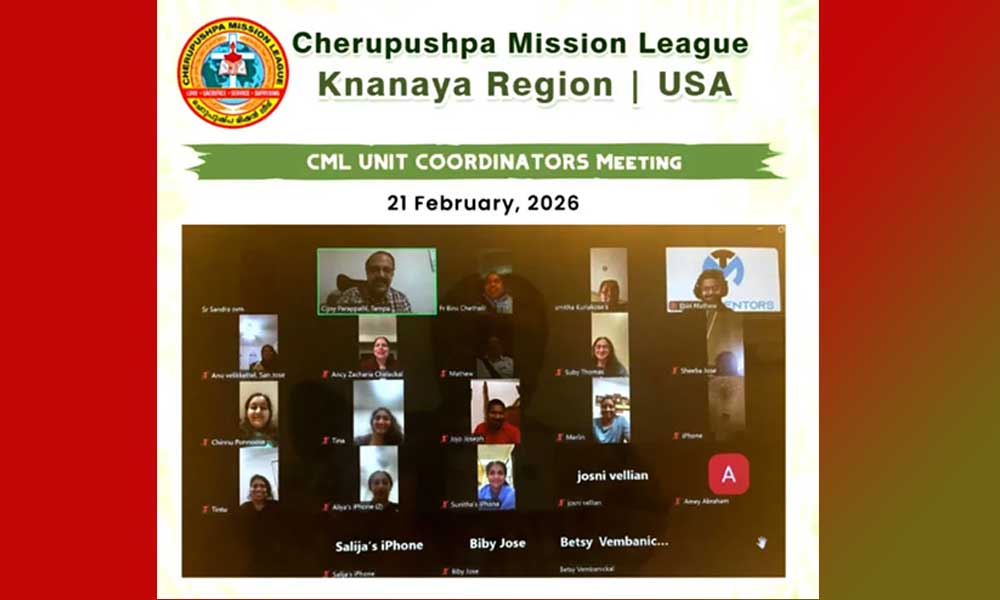 ചിക്കാഗോ: ചെറുപുഷ്പ മിഷന് ലീഗ് ക്നാനായ റീജിയണല് നേതൃത്വ സംഗമം സംഘടിപ്പിച്ചു. മിഷന് ലീഗ് റീജിയണല് ഡയറക്ടര് ഫാ. ബിന്സ് ചേത്തലില്, അന്തര്ദേശീയ റീജിയണല് ഓര്ഗനൈസര് സിജോയ് പറപ്പള്ളില് എന്നിവര് ചര്ച്ചകള്ക്ക് നേതൃത്വം നല്കി സംസാരിച്ചു.