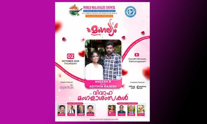 HomeAmericaഡബ്ല്യു.എം.സി ഫിലാഡല്‍ഫിയ പ്രൊവിന്‍സ് സംഘടിപ്പിക്കുന്ന 25 ജോഡി യുവതി യുവാക്കളുടെ സമൂഹ വിവാഹം ഗാന്ധിഭവനില്‍