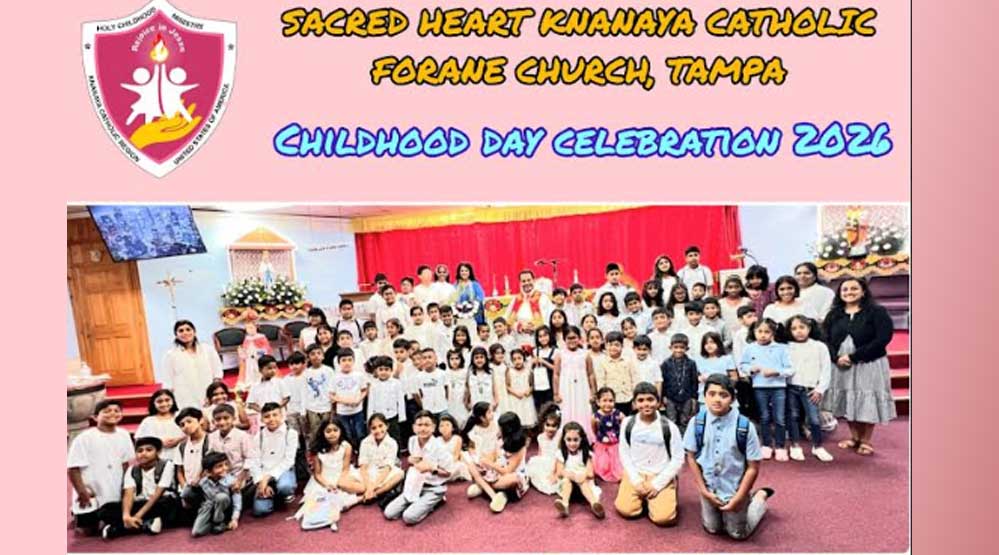 താമ്പാ: ഹോളി ചൈൽഡ്ഹുഡ് മിനിസ്ട്രി (തിരുബാല സഖ്യം) യുടെ ആഭിമുഖ്യത്തിൽ താമ്പാ സേക്രഡ് ഹാർട്ട് ക്നാനായ കത്തോലിക്കാ ഫൊറോനാ ദേവാലയത്തിൽ നടത്തിയ ഹോളി ചൈൽഡ്ഹുഡ് ദിനം അവിസ്മരണീയമായി. വിശുദ്ധ കുർബാനക്ക് മുന്നോടിയായി കുട്ടികൾ നടത്തിയ കാഴ്ച്ച സമർപ്പണത്തോടുകൂടി പരിപാടികൾ ആരംഭിച്ചു.