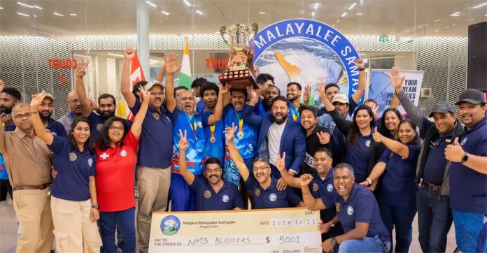 നയാഗ്ര ഫോൾസ് : നയാഗ്ര മലയാളി സമാജത്തിന്റെ മൂന്നാമത് രാജ്യാന്തര വോളിബോൾ ടൂർണമെന്റിൽ ആതിഥേയരായ എൻഎംഎസ് ബ്ലാസ്റ്റേഴ്സ് ഓപ്പൺ വിഭാഗത്തിൽ ജേതാക്കളായി. ടൊറന്റോ മാന്റിൽ ജിടിഎയെയാണ് ഫൈനലിൽ ബ്ളാസ്റ്റേഴ്സ് പരാജയപ്പെടുത്തിയത്. ബ്രാംപ്ടൺ സ്പൈക്കേഴ്സ്, ലണ്ടൻ ഫാൽക്കൺസ് എന്നിവർ മൂന്നും നാലും സ്ഥാനക്കാരായി