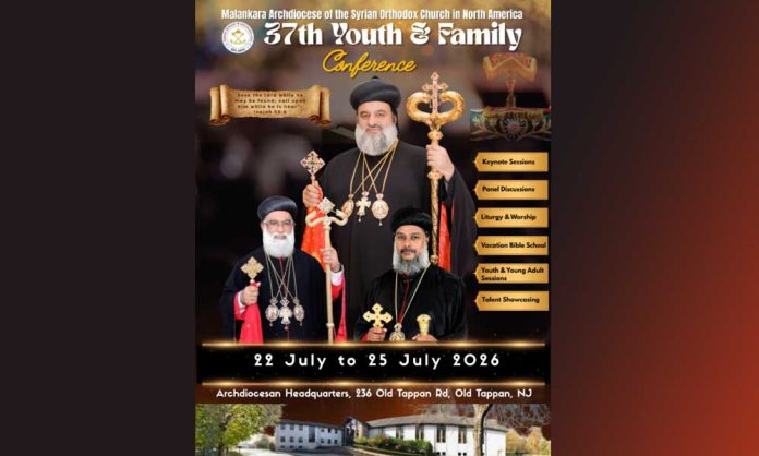 ന്യൂജേഴ്‌സി: യാക്കോബായ സുറിയാനി ഓര്‍ത്തഡോക്‌സ് സഭയുടെ നോര്‍ത്ത് അമേരിക്കന്‍ അതിഭദ്രാസനത്തിന്റെ 37-ാമത് യൂത്ത് ആന്റ് ഫാമിലി കോണ്‍ഫറന്‍സ് 2026 ജൂലൈ മാസം 22 മുതല്‍ 25 വരെ നോര്‍ത്ത് അമേരിക്കന്‍ അതിഭദ്രാസന ആസ്ഥാനത്ത് വച്ച് (236 Old Tappan Rd, Old Tappan, NJ) നടത്തുവാന്‍ 2026 ജനുവരി മാസം 9-ാം തീയ്യതി അതിഭദ്രാസനാധിപന്‍ അഭവന്ദ്യ യല്‍ദോ മോര്‍ തീത്തോസ് തിരുമേനിയുടെ അദ്ധ്യക്ഷതയില്‍ ചേര്‍ന്ന ഭദ്രാസന കൗണ്‍സില്‍ യോഗത്തില്‍ തീരുമാനിച്ചു.