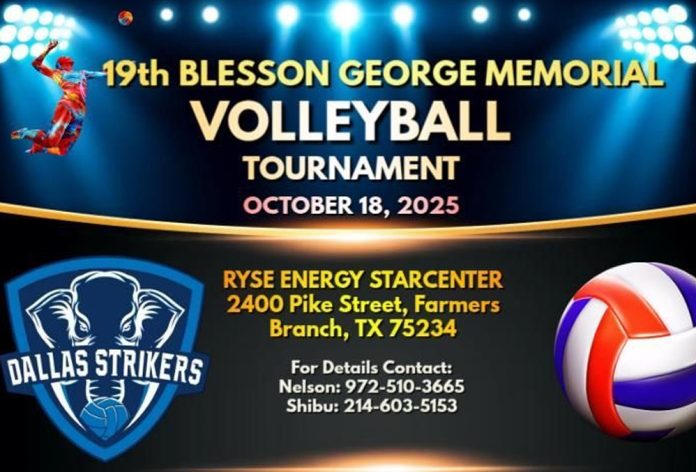 ഫാർമേഴ്സ് ബ്രാഞ്ചിൽ 19-ാമത് ബ്ലെസ്സൺ ജോർജ്ജ് മെമ്മോറിയൽ വോളിബോൾ ടൂർണമെൻ്റ് ഇന്ന്; ഡാളസ് സ്ട്രൈക്കേഴ്സ് ആതിഥേയർ