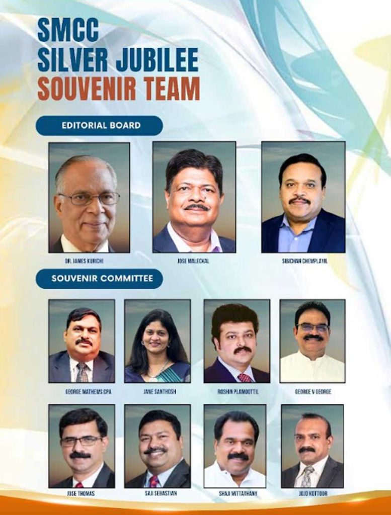 കോണ്ഫറന്സ് രജിസ്ട്രേഷന് ചെയര്മാനും, ജുബിലി വെബ്സൈറ്റ്, ജൂബിലി സംബന്ധമായ ഡിജിറ്റല്മീഡിയ പരസ്യപ്രസിദ്ധീകരണങ്ങള് എന്നിവ തയാറാക്കിയ സിബിച്ചന് ചെമ്പ്ളായില് ആയിരുന്നു സുവനീറിന്റെ ചീഫ് എഡിറ്റര്. 2009 ല് പ്രസിദ്ധീകരിച്ച എസ്. എം. സി. സി. പത്താം വാര്ഷിക സ്മരണികയുടെ ചീഫ് എഡിറ്ററും സിബിച്ചന് തന്നെയായിരുന്നു. ഡോ. ജയിംസ് കുറിച്ചി കോര്ഡിനേറ്ററായ സുവനീര് കമ്മിറ്റിയില് ജോര്ജ് മാത്യു സി.പി.എ., ജോസ് മാളേയ്ക്കല്, ജോര്ജ് വി. ജോര്ജ്, ജോജോ കോട്ടൂര്,സജി സെബാസ്റ്റ്യന്, ജോസ് തോമസ്, റോഷിന് പ്ലാമൂട്ടില്, ജയിന് സന്തോഷ്, ഷാജി മിറ്റത്താനി, സിബിച്ചന് ചെമ്പ്ളായില് എന്നിവര് അംഗങ്ങളായിരുന്നു.