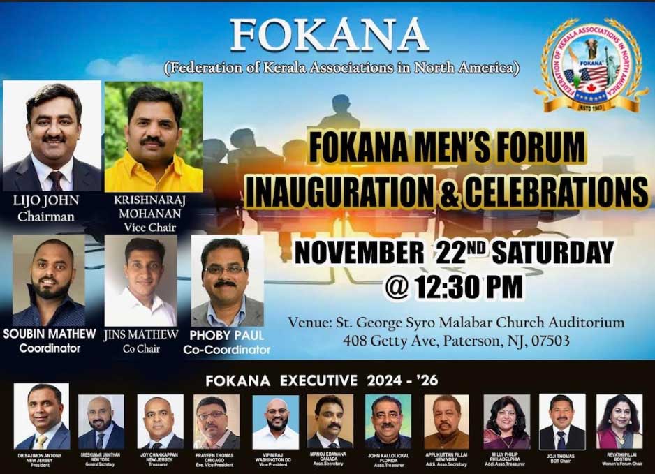 ഫൊക്കാന മെൻസ് ക്ലബ് രൂപീകരിക്കുന്നത്. മെൻസ് ഫോറം ഭാരവാഹികൾ ആയി ചെയർ ലിജോ ജോൺ, വൈസ് ചെയെർസ് ആയ കൃഷ്ണരാജ് മോഹൻ, കോചെയർ ജിൻസ് മാത്യു, കോർഡിനേറ്റേഴ്‌സ് ആയ സുബിൻ മാത്യു, ഫോബി പോൾ എന്നിവരെ നിയമിച്ചു.