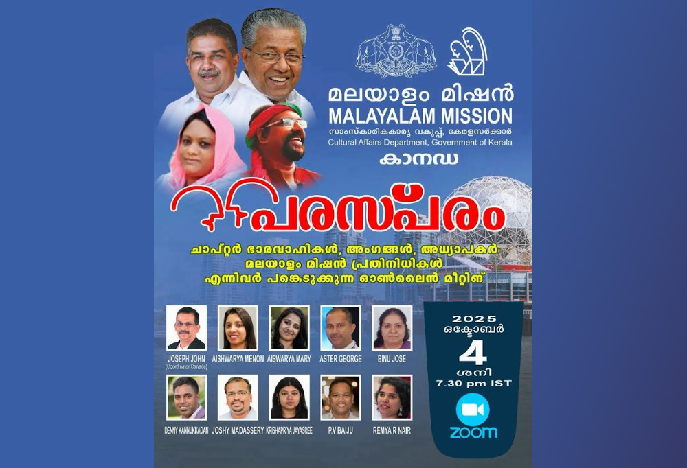 കാൽഗറി: കേരള സർക്കാരിന്റെ സാംസ്കാരിക വകുപ്പിലെ “എവിടെയെല്ലാം മലയാളി , അവിടെയെല്ലാം മലയാളം” എന്ന ലക്ഷ്യവുമായി , മലയാളികളുടെ ഭാഷയും , തനതു സംസ്കാരവും അടുത്ത തലമുറയ്ക്ക് പകർന്നുകൊടുക്കാൻ അഹോരാത്രം ശ്രമിക്കുന്ന മലയാളം മിഷന്റെ കാനഡ ചാപ്റ്ററിന്റെ “പരസ്പരം” വിജയകരമായി .
