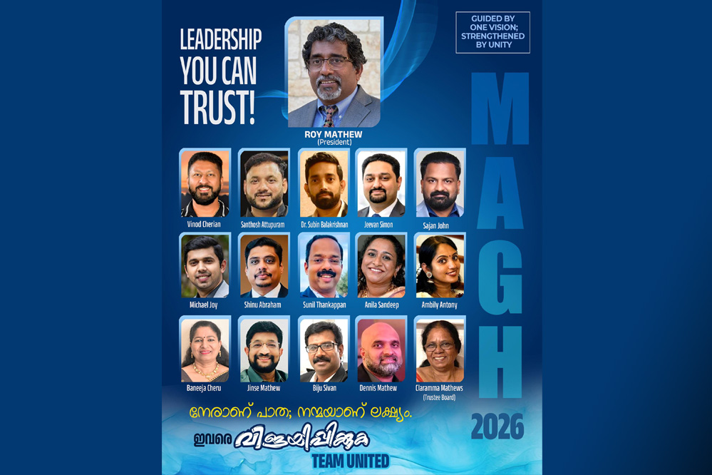 ഹൂസ്റ്റൺ: മലയാളി അസോസിയേഷൻ ഓഫ് ഗ്രേറ്റർ ഹൂസ്റ്റണിൻ്റെ ഡിസംബറിൽ നടക്കുന്ന വാർഷിക തെരഞ്ഞെടുപ്പിൽ പ്രസിഡൻ്റ് സ്ഥാനാർത്ഥി റോയി മാത്യൂവിൻ്റെ ശക്തമായ നേത്രത്തിൽ ടീം യുണൈറ്റഡ് പാനൽ തയ്യാറായി.