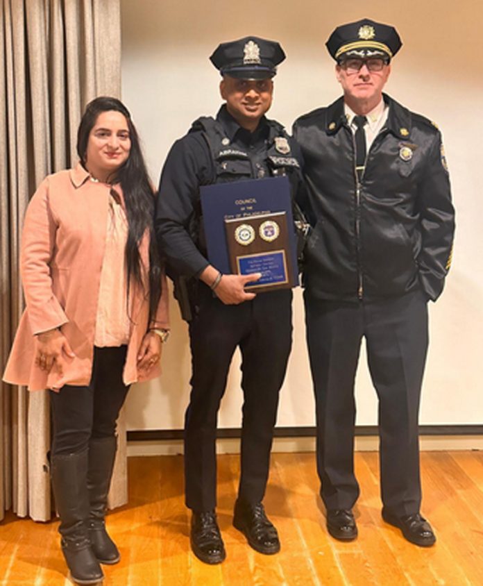 ഫിലഡൽഫിയ: നഗരത്തിൽ നടന്ന സാഹസിക പിന്തുടർച്ചയിൽ മോഷണവാഹനവുമായി രക്ഷപ്പെടാൻ ശ്രമിച്ച 16-കാരനെ പോലീസ് പിടികൂടി. ഈ സംഭവത്തിൽ ധൈര്യവും ജാഗ്രതയും പ്രകടിപ്പിച്ച ഓഫീസർ ജോജി എബ്രഹാം (#1348) ഫെബ്രുവരി 2026-ലെ “പോലീസ് ഓഫീസർ ഓഫ് ദ മന്ത്” ആയി തിരഞ്ഞെടുത്തു. കഴിഞ്ഞ 10 വർഷമായി ഫിലഡൽഫിയ സിറ്റി പോലീസ് വകുപ്പിൽ സേവനമനുഷ്ഠിച്ചു വരുന്ന ഉദ്യോഗസ്ഥനാണ് മലയാളിയായ ജോജി എബ്രഹാം.