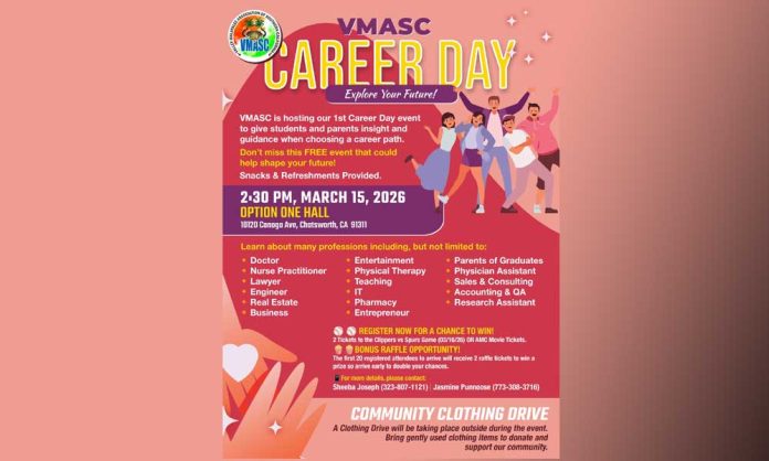ലോസ് ഏഞ്ചൽസ്: സതേൺ കാലിഫോണിയയിലെ പ്രമുഖ സംസ്കാരിക സംഘടനയായ (VMASC) ഇഥo പ്രഥമമായി സംഘടിപ്പിക്കുന്ന ‘explore your ഫ്യൂച്ചർ’ കരിയർ day മാർച്ച് 15ന് നടക്കും.