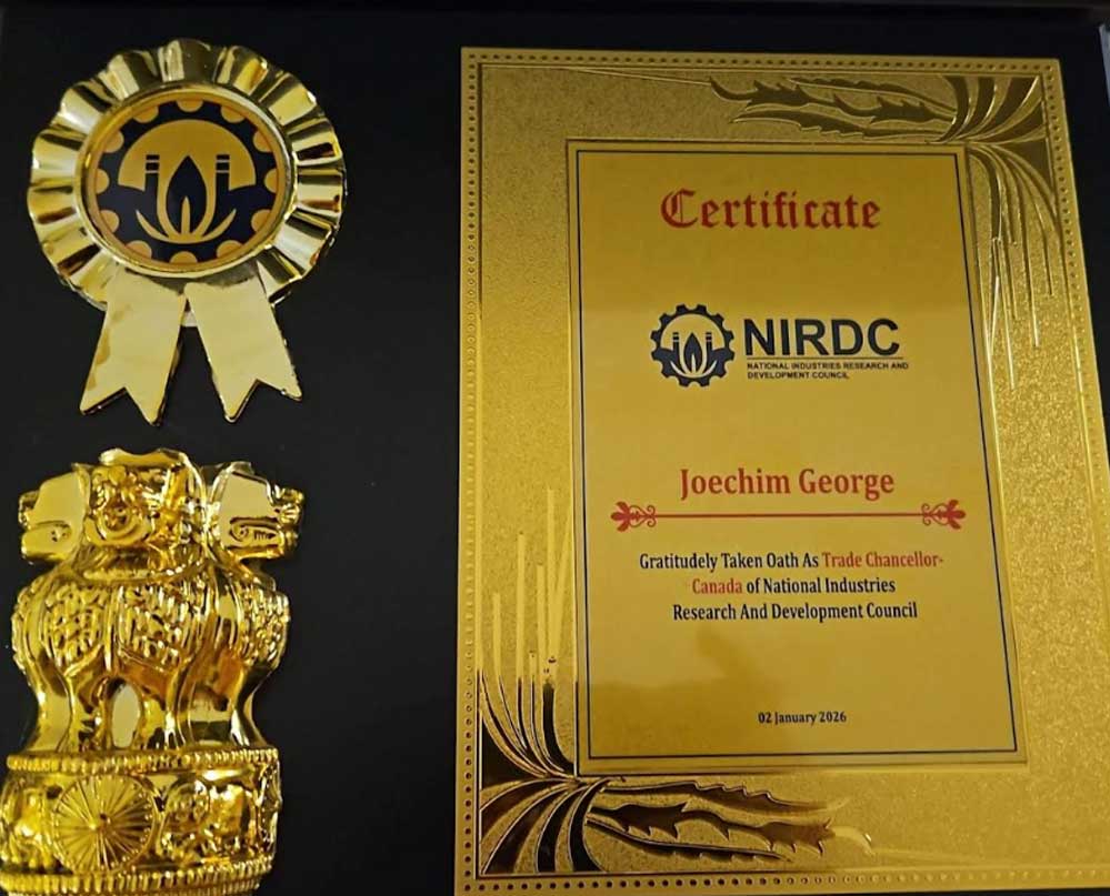 കാനഡയിലെ ഇന്ത്യയുടെ ട്രേഡ് ചാൻസലർ ആയി നിയമിതനായ ശ്രീ. ജോകിം ജോർജ് 2026 ജനുവരി 2-ന് ന്യൂഡൽഹിയിൽ വച്ചുനടന്ന ചടങ്ങിൽ സത്യപ്രതിജ്ഞ ചെയ്തു ചുമതലയേറ്റു .