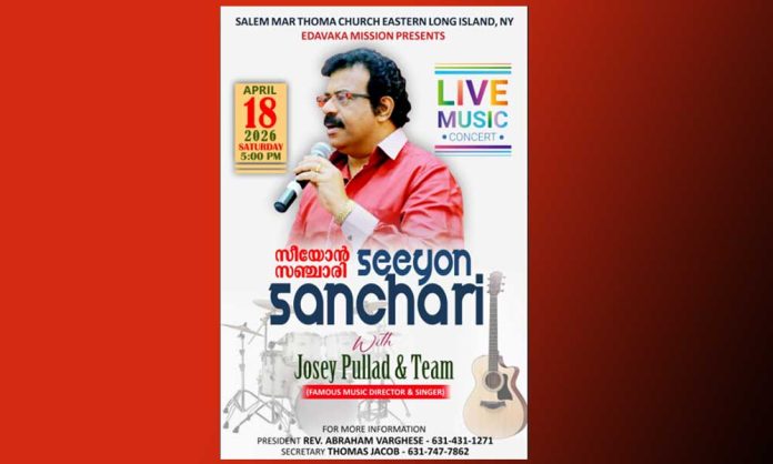 ഈ ആത്മീയ സംഗീതപരമ്പരയുടെ 53- എഡിഷൻ ഏപ്രിൽ 18 ശനിയാഴ്ച വൈകുന്നേരം 5 മണിക്ക് ഈസ്റ്റേൺ ലോങ്ങ് ഐലന്റിലുള്ള ശാലേം മാർത്തോമാ പള്ളിയിൽ വച്ച് നടത്തപ്പെടും.ആത്മീയ സംഗീതസാന്നിധ്യം സൃഷ്ടിക്കുന്ന ഈ പ്രത്യേക സന്ധ്യ, വിശ്വാസികൾക്ക് ഒരുമിച്ച് ആരാധനാനുഭവത്തിൽ പങ്കുചേരാനുള്ള ഒരു വിലപ്പെട്ട അവസരമായി മാറും.