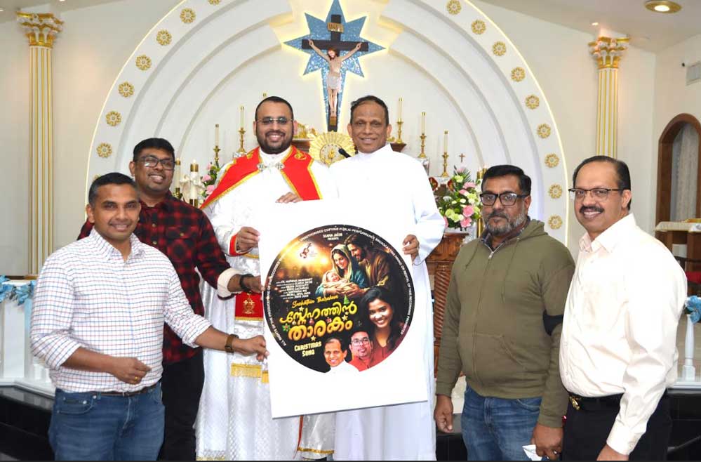 കൊപ്പേൽ (ഡാളസ്): കൊപ്പേൽ സെന്റ് അൽഫോൻസാ ഇടവക വികാരി ഫാ. മാത്യൂസ് മുഞ്ഞനാട്ട് വരികളെഴുതി, സംഗീത സംവിധായകൻ സ്കറിയ ജേക്കബ് ഈണം പകർന്ന ‘സ്നേഹത്തിൻ താരകം’ എന്ന പുതിയ ക്രിസ്മസ് കരോൾ ഗാന ആൽബം പ്രകാശനം ചെയ്തു.