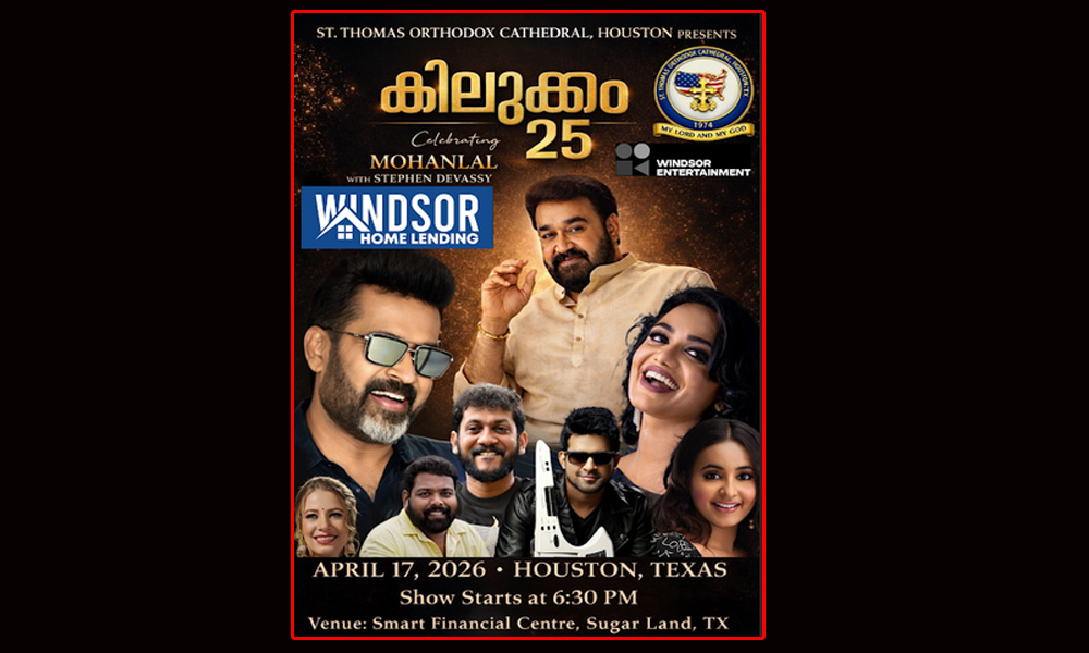 ഹൂസ്റ്റൺ സെന്റ് തോമസ് ഇന്ത്യൻ ഓർത്തഡോക്സ് കത്തീഡ്രൽ സംഘടിപ്പിക്കുന്ന “കിലുക്കം 25” , വിൻസർ ഹോം ലെൻഡിംഗിന്റെ സഹകരണത്തോടെയാണ് നടക്കുന്നത്. വിൻസർ എന്റർടെയിൻമെന്റാണ് പരിപാടിയുടെ മാനേജ്മെന്റ്.