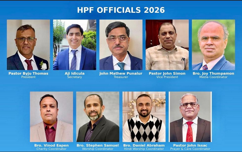 ഹൂസ്റ്റണ്‍ പെന്തെക്കോസ്തു ഫെലൊഷിപ്പിന്റെ 2026 ലെ പുതിയ നേതൃത്വം