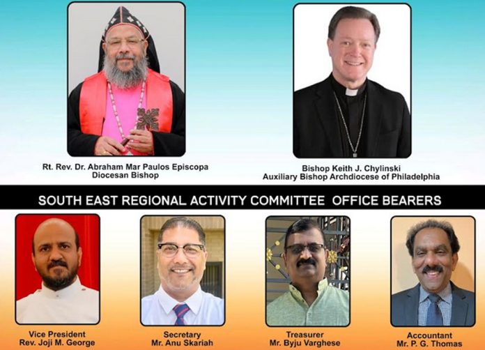 വൈസ് പ്രസിഡണ്ട് റെവ. ജോജി എം ജോർജ്, സെക്രട്ടറി അനു സ്കറിയ സൗത്ത് ഈസ്റ്റ് റീജനൽ ആക്ടിവിറ്റി കമ്മറ്റി അംഗങ്ങൾ- ട്രസ്റ്റി – ബൈജു വർഗീസ്, അക്കൗണ്ടൻറ് – പി .ജി തോമസ് ,