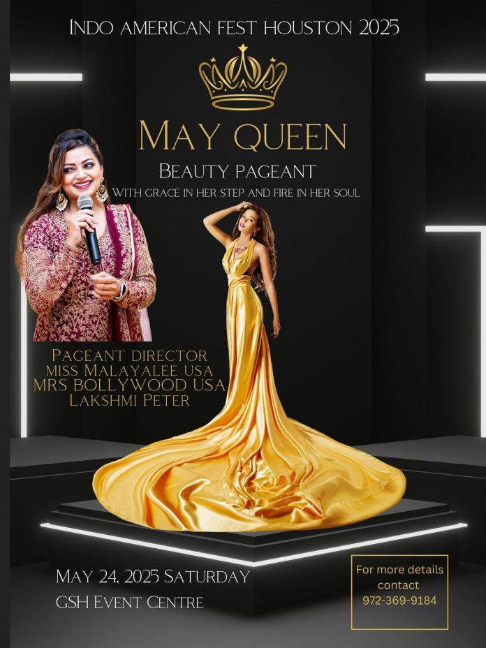 ഹൂസ്റ്റൺ: ഗ്ലോബൽ ഇന്ത്യൻ ന്യൂസ് 10 എക്സ് പ്രോപർട്ടീസുമായി സഹകരിച്ചു സംഘടിപ്പിക്കുന്ന ഇൻഡോ അമേരിക്കൻ ഫെസ്റ്റ് 2025നോട് അനുബന്ധിച്ച് “മെയ് ക്വീൻ” സൗന്ദര്യ മത്സരം സംഘടിപ്പിക്കുന്നു. മെയ് 24 ന് ജിഎസ്എച്ച് ഇവന്റ് സെന്ററിലാണ് പരിപാടി സംഘടിപ്പിക്കുന്നത്.