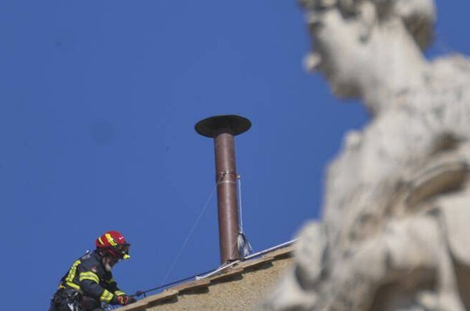 മാർപ്പാപ്പയെ തെരഞ്ഞെടുക്കാനുള്ള കോൺക്ലേവ്: സിസ്റ്റീൻ ചാപ്പലിന്റെ മേൽക്കൂരയിൽ ചിമ്മിനി സ്ഥാപിച്ചു