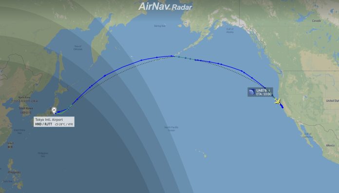 ടോക്കിയോ: ടോക്കിയോയിലെ ഹനേഡ വിമാനത്താവളത്തിൽ നിന്ന് സാൻ ഫ്രാൻസിസ്കോയിലേക്ക് പുറപ്പെട്ട യുണൈറ്റഡ് എയർലൈൻസ് വിമാനം UA876 അടിയന്തരാവസ്ഥ പ്രഖ്യാപിച്ചു. പറന്നുയർന്ന് ഏകദേശം 9 മണിക്കൂറിന് ശേഷമാണ് ബോയിംഗ് 777-200ER (രജിസ്ട്രേഷൻ N229UA) വിമാനം അടിയന്തരാവസ്ഥ പ്രഖ്യാപിച്ചത്.