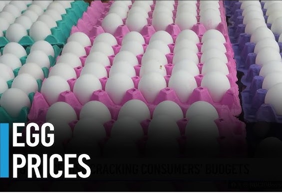 ഏറ്റവും പുതിയ പ്രതിമാസ ഉപഭോക്തൃ വില സൂചിക കാണിക്കുന്നത് യുഎസ് നഗരങ്ങളിൽ രണ്ടു മാസം 99 സെന്റ് ഉണ്ടായിരുന്ന ഒരു ഡസൻ ഗ്രേഡ് എ മുട്ടകളുടെ ശരാശരി വില $4.95 ൽ എത്തിനില്കുന്നു , ഇത് രണ്ട് വർഷം മുമ്പ് സ്ഥാപിച്ച $4.82 എന്ന മുൻ റെക്കോർഡിനെയും 2023 ഓഗസ്റ്റിൽ രേഖപ്പെടുത്തിയ $2.04 എന്ന ഏറ്റവും കുറഞ്ഞ വിലയുടെ ഇരട്ടിയിലധികം വരും.