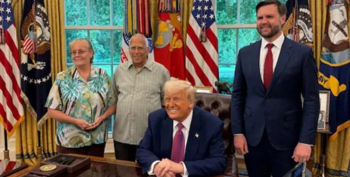 വാഷിങ്ടൻ ഡിസി : പോപ്പ് ലിയോ പതിനാലാമന്റെ സഹോദരൻ ലൂയിസ് പ്രെവോസ്റ്റിനും ഭാര്യ ഡെബോറയ്ക്കും വൈറ്റ് ഹൗസിൽ ഊഷ്മള സ്വീകരണം നൽകി യുഎസ് പ്രസിഡന്റ് ഡോണൾഡ് ട്രംപ്. ട്രംപിന്റെ ക്ഷണപ്രകാരമാണ് ഇരുവരും വൈറ്റ് ഹൗസിലെത്തിയത്.പോപ്പിന്റെ സഹോദരൻ തന്റെ അനുഭാവിയാണെന്ന് അറിഞ്ഞതോടെ നേരിട്ട് കാണാനും ആലിംഗനം ചെയ്യാനും ആഗ്രഹിച്ചതിനെ തുടർന്നാണ് ട്രംപ് ലൂയിസ് പ്രൊവോസ്റ്റിനെ വൈറ്റ്ഹൗസിലേക്ക് ക്ഷണിച്ചത്.