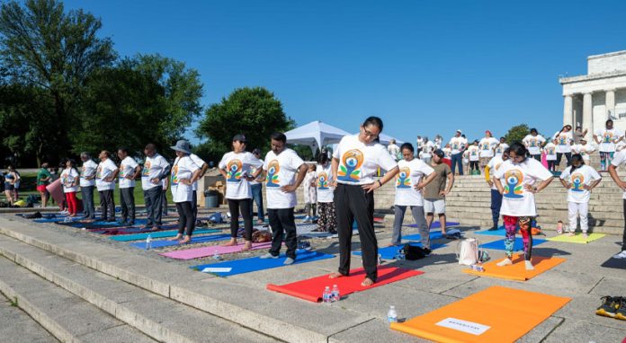 വാഷിംഗ്ടൺ: പതിനൊന്നാമത് അന്താരാഷ്ട്ര യോഗ ദിനത്തിന്റെ വർണ്ണാഭമായ മുന്നോടിയായി, ജൂൺ 19 ന് ചരിത്രപ്രസിദ്ധമായ ലിങ്കൺ മെമ്മോറിയലിൽ ഇന്ത്യൻ എംബസി സംഘടിപ്പിച്ച ഒരു യോഗ സെഷൻ ശ്രദ്ധേയമായി . ഇന്ത്യയുടെ പുരാതന പാരമ്പര്യം ആഘോഷിക്കാൻ ഒത്തുകൂടിയ ഇന്ത്യൻ പ്രവാസികളും തദ്ദേശീയ അമേരിക്കൻ നിവാസികളും ഉൾപ്പെടെ വലിയൊരു ജനക്കൂട്ടമാണ് പരിപാടിയിൽ പങ്കെടുത്തത്.