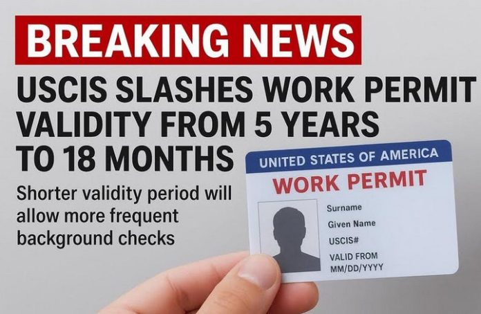 തൊഴിൽ അംഗീകാര രേഖകളുടെ (EADs) പരമാവധി കാലാവധി അമേരിക്കൻ പൗരത്വ, കുടിയേറ്റ സേവന വിഭാഗം (USCIS) ഗണ്യമായി കുറച്ചു. സുരക്ഷാ പരിശോധനകൾ ശക്തിപ്പെടുത്താനും വഞ്ചന തടയാനും വേണ്ടിയാണ് നടപടിയെന്ന് ഏജൻസി അറിയിച്ചു.