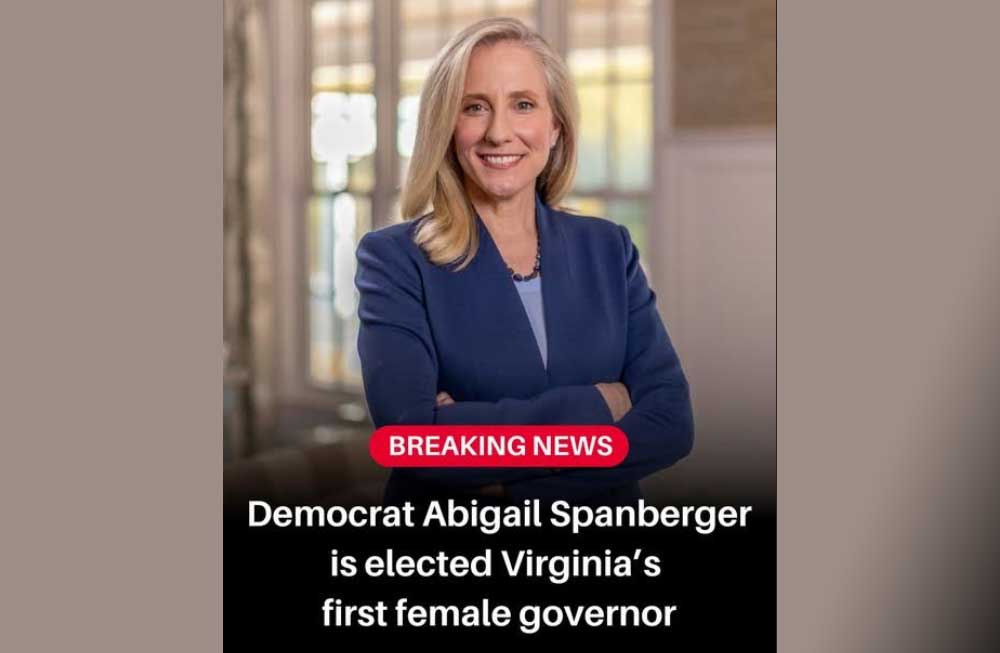 വോട്ടെടുപ്പിലുടനീളം സ്ഥിരമായി ലീഡ് നിലനിർത്തിയ സ്പാൻബെർഗറിനെ വിർജീനിയയുടെ ആദ്യ വനിതാ ഗവർണറാക്കും.