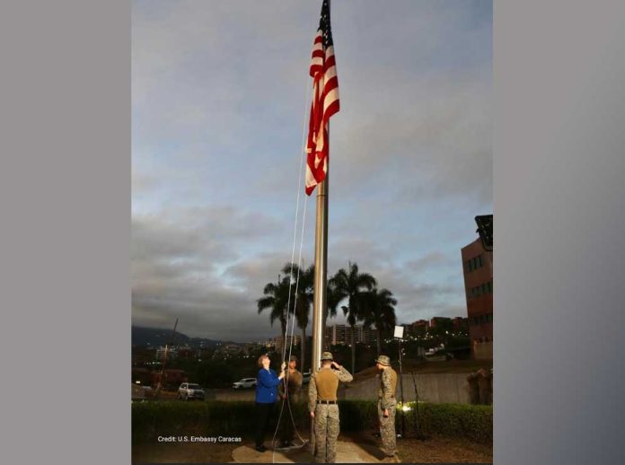 HomeBreaking newsവെനസ്വേല യുഎസ് എംബസിയിൽ വീണ്ടും അമേരിക്കൻ പതാക ഉയർന്നു; 2019-ന് ശേഷം ആദ്യം