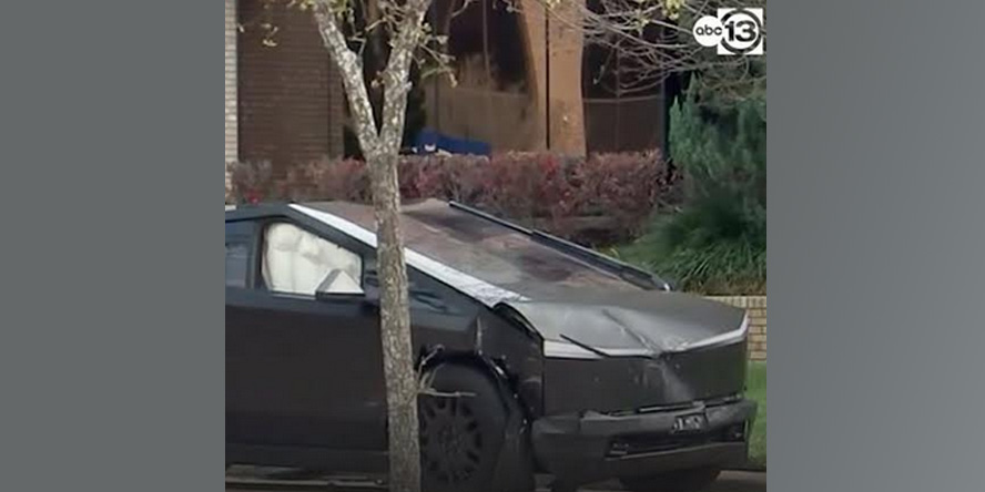 ഒരു ടെസ്‌ല സൈബർട്രക്കും വൈറ്റ് ബ്യൂക്ക് സെഡാനും തമ്മിലാണ് കൂട്ടിയിടിച്ചത്.