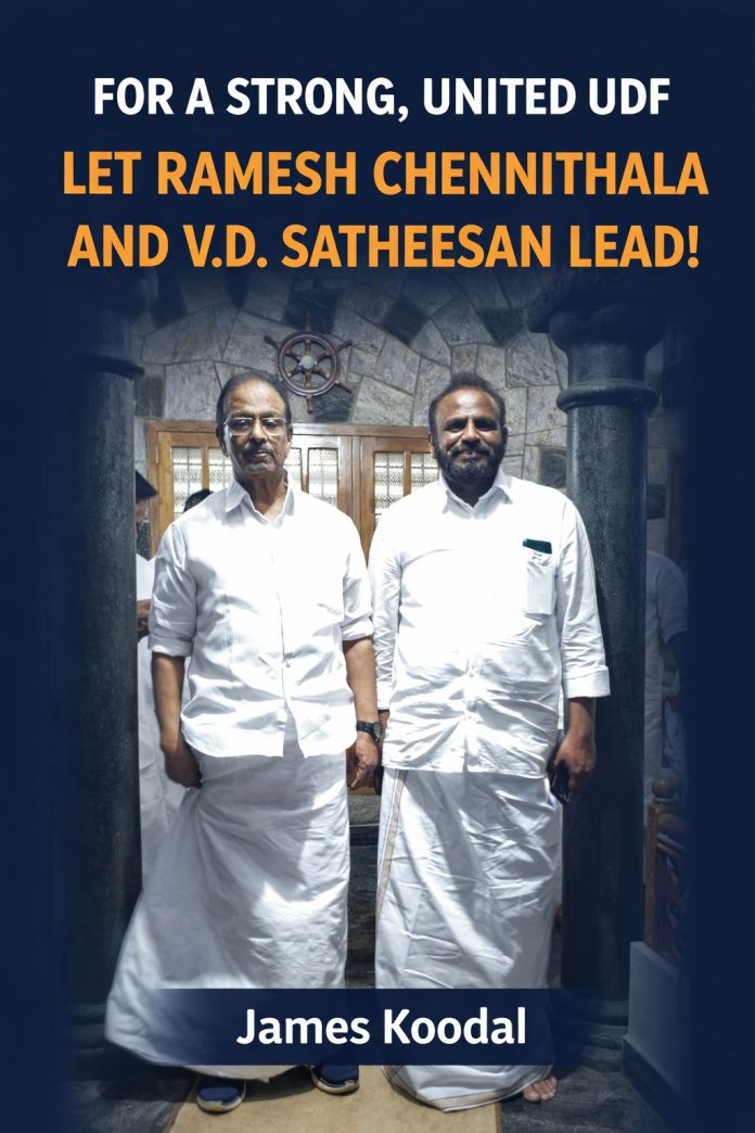 ഇന്ന് യുഡിഎഫിന് മുന്നോട്ട് പോകേണ്ടത് ഒരാളുടെ കരുത്തിൽ അല്ല മറിച്ച് പരിചയസമ്പത്തും നവീനചിന്തയും കൈകോർക്കുന്ന ഒരു നേതൃത്വത്തിലൂടെയാണ്. അതിനാൽ,രമേശ് ചെന്നിത്തലയും വി.ഡി. സതീശനും നയിക്കട്ടെ എന്നതാണ് സമയോചിതമായ സമീപനം.ചെന്നിത്തലയുടെ ഭരണപരിചയവും സംഘടനാ മികവും, സതീശന്റെ നിയമസഭാ പാടവവും ജനകീയ സമീപനവും ഈ കൂട്ടുകെട്ട് യുഡിഎഫിന് ശക്തമായ ദിശാബോധം നൽകും എന്ന വിശ്വാസം പ്രവർത്തകരിൽ ശക്തമാണ്. ഇത്തരം സമയങ്ങളിൽ വ്യത്യസ്തമായ സന്ദേശങ്ങൾ പുറത്തേക്ക് പോകുന്നത് പ്രവർത്തകരിൽ ആശയക്കുഴപ്പം സൃഷ്ടിക്കാനും ഇടയാക്കും. അതുകൊണ്ട് തന്നെ,സംഘബലം മുൻനിർത്തിയുള്ള വ്യക്തമായ ദിശാബോധമാണ് ഇപ്പോൾ ആവശ്യമായത്.