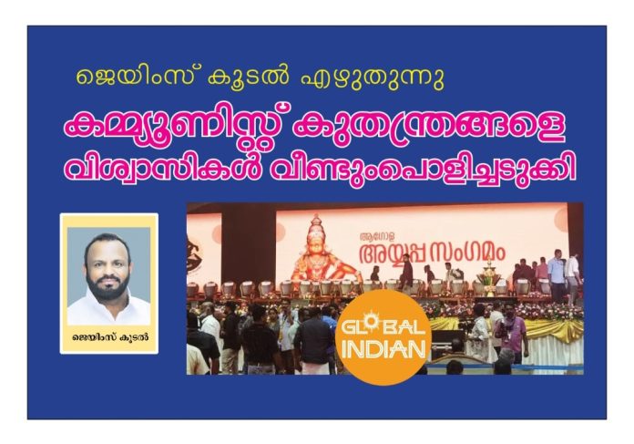 മതവിശ്വാസം ഏതായാലും വിശ്വാസികളുടെ മനസിനെ കപടവിശ്വാസം കൊണ്ട് കബളിപ്പിക്കാൻ നോക്കരുത്. അങ്ങനെ ചെയ്താൽ അതിന്റെ അനന്തരഫലം ശബരിമലയിലെ പുണ്യഭൂമിയിൽ സംസ്ഥാന സർക്കാർ നടത്തിയ അയ്യപ്പ സംഗമത്തിൽ കണ്ടതുപോലെയാകും. വിശ്വാസികൾ കപടവിശ്വാസികളെ പുച്ഛിച്ചു തള്ളും. കേരളത്തിൽ രണ്ടു തിരഞ്ഞെടുപ്പുകൾ അടുത്തുവരികയാണ്. അടുത്ത രണ്ടുമാസം കഴിഞ്ഞ് നടക്കാൻ പോകുന്ന തദ്ദേശ തിരഞ്ഞെടുപ്പാണ് ആദ്യത്തേത്. അതുകഴിഞ്ഞ് ഏതാനും മാസം പിന്നിടുമ്പോൾ നിയമസഭാ തിരഞ്ഞെടുപ്പ് നടക്കും. സ്വേച്ഛാതിപത്യത്തിന്റെയും സ്വജനപക്ഷപാതത്തിന്റെയും അഴിമതിയുടെയും അങ്ങേയറ്റം എത്തി നിൽക്കുന്ന കമ്മ്യൂണിസ്റ്റ് സർക്കാരിനെ ജനങ്ങൾ ഏതാണ്ട് പൂർണമായി കൈവിട്ട നിലയിലാണ്. ഈ അവസ്ഥയിൽ തിരഞ്ഞെടുപ്പിനെ നേരിട്ടാൽ ഉണ്ടാകാൻ പോകുന്ന വമ്പൻ തിരിച്ചടി ഒഴിവാക്കാൻ പിണറായി സർക്കാർ ഹിന്ദുവിശവാസികളെ കൂട്ടുപിടിക്കാൻ ശ്രമിക്കുകയാണ്. കഴിഞ്ഞ പാർലമെന്റ് തിരഞ്ഞെടുപ്പിൽ മുസ്ളീങ്ങളെ പാട്ടിലാക്കാൻ നടത്തിയ ശ്രമങ്ങൾ അമ്പേ പരാജയപ്പെട്ടപ്പോഴാണ് സർക്കാരും സി.പി. എമ്മും ചുവടു മാറ്റി ആഗോള അയ്യപ്പസംഗമത്തിലേക്ക് തിരിഞ്ഞത്. ഇതിനു പിന്നിലെ ബുദ്ധി ആരുടേതായാലും അയാളെ നമിച്ചിരിക്കുന്നു. പത്തുവർഷത്തോളമാകുന്നു പിണറായി വിജയൻ കേരളം ഭരിക്കാൻ തുടങ്ങിയിട്ട്. മതനിരപേക്ഷതയാണ് തങ്ങളുടെ നയം എന്നു പ്രഖ്യാപിച്ചിരിക്കുന്ന സി.പി.എമ്മിനും ഇടതുസർക്കാരിനും എങ്ങനെയാണ് മതവിശ്വാസികൾക്കു വേണ്ടി ഒരു സംഗമം നടത്താൻ കഴിയുന്നത്. മതത്തിന്റെ നിരാസം ആണല്ലോ മതനിരപേക്ഷത എന്നതുകൊണ്ട് ഉദ്ദേശിക്കുന്നത്.
