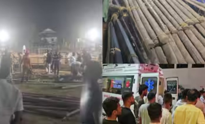 അടിവാട് മാലിക്ക് ദിനാർ സ്കൂൾ ഗ്രൗണ്ടിലാണ് അപകടം ഉണ്ടായത്. കളി തുടങ്ങുന്നതിന് 10 മിനിട്ട് മുമ്പായിരുന്നു അപകടം ഉണ്ടായത്. ഹീറോ യങ്സ് എന്ന ക്ലബ് സംഘടിപ്പിച്ച ടൂർണമെൻ്റിനിടെയായിരുന്നു അപകടം. ഇന്ന് മത്സരത്തിന്റെ ഫൈനലായിരുന്നു. കവുങ്ങിന്റെ തടികൊണ്ട് നിർമ്മിച്ച താൽക്കാലിക ഗാലറിയാണ് തകർന്നത്. പരിക്കേറ്റവരെ മൂവാറ്റുപുഴയിലും കോത മംഗലത്തുമായി ആശുപത്രിയിൽ പ്രവേശിപ്പിച്ചു. അപകടത്തില് പരിക്കേറ്റ 22 ഓളം പേരെ ആശുപത്രിയിലെത്തിച്ചു എന്നാണ് ലഭിക്കുന്ന വിവരം. 15 പേർ കോതമംഗലം ബെസേലിയോസ് ആശുപത്രിയിലും 5 പേർ കോതമംഗലം ധർമഗിരി ആശുപത്രിയിലും ചികിത്സയിലാണ്. 2 പേരെ വിദഗ്ധ ചികിത്സക്കായി ആലുവ രാജഗിരി ആശുപത്രിയിലേക്ക് മാറ്റി. പലരുടെയും കൈകാലുകൾ ഒടിഞ്ഞിട്ടുണ്ട്.