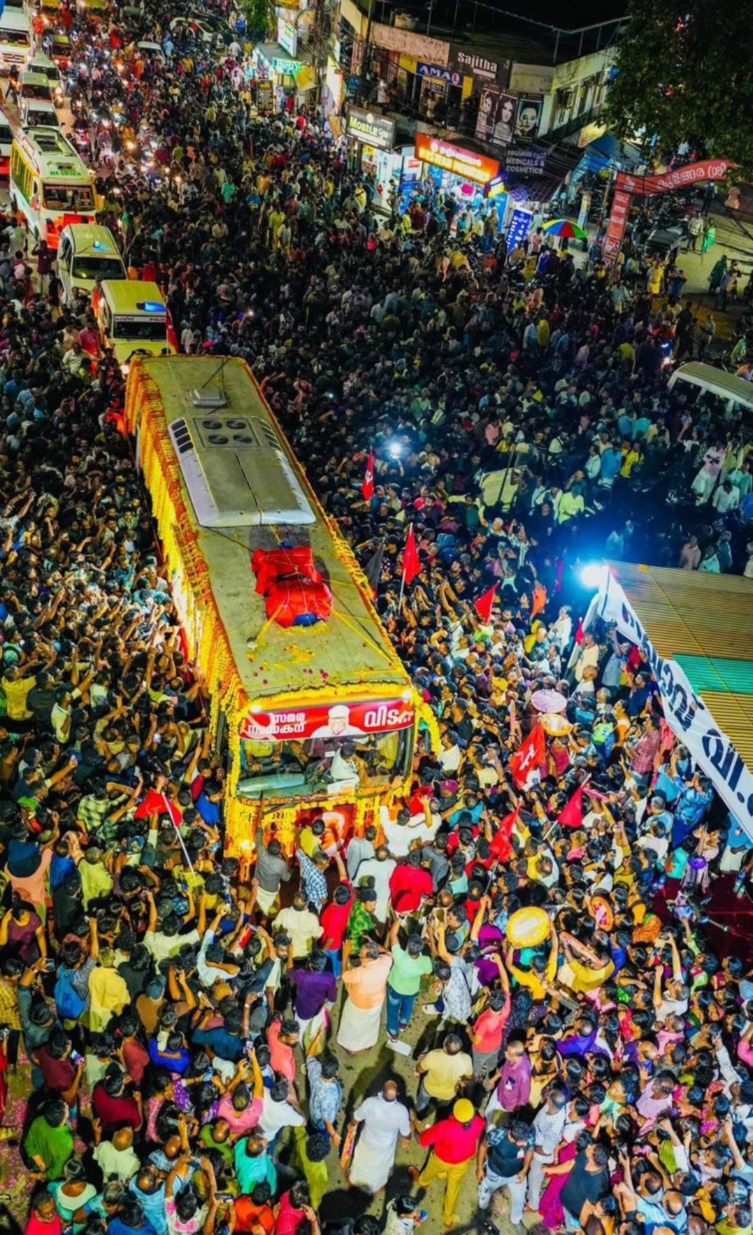 ആലപ്പുഴ: കേരളത്തിന്റെ മുൻ മുഖ്യമന്ത്രി വി.എസ് അച്യുതാനന്ദന്റെ വിലാപയാത്ര ജന്മനാടായ ആലപ്പുഴയിലൂടെ നീങ്ങുമ്പോൾ ഹരിപ്പാട് വി.എസിനെ കത്ത് കോൺഗ്രസ്സ് നേതാവ് രമേശ് ചെന്നിത്തലയും. വി.എസിന് ആദരാഞ്ജലി അർപ്പിക്കാൻ മണിക്കൂറുകളായി കാത്തിരിക്കുകയാണെന്നും രമേശ് ചെന്നിത്തല പറഞ്ഞു.