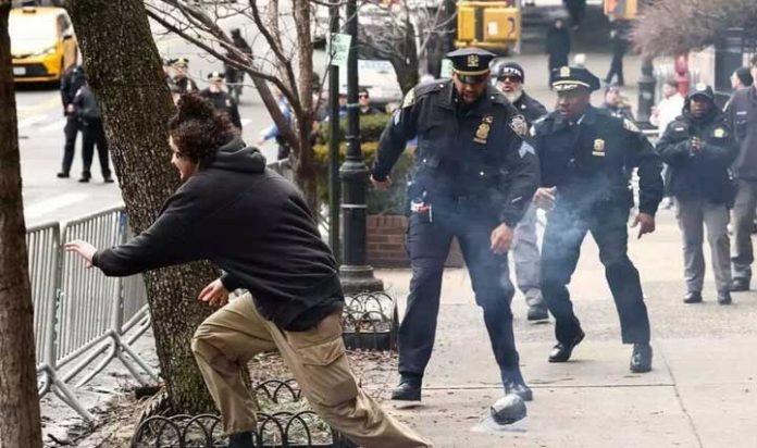 ബോള്ട്ടുകളും സ്ക്രൂകളും നിറച്ച നിലയിലായിരുന്നു സ്ഫോടക വസ്തുവെന്ന് പൊലീസ് കണ്ടെത്തി. എന്നാല് ഇത് പ്രതിഷേധക്കാരല്ല എറിഞ്ഞതെന്നും, മറിച്ച് പ്രതിഷേധക്കാര്ക്ക് നേരെ മറ്റൊരാള് എറിഞ്ഞതാണെന്നുമാണ് പ്രാഥമിക നിഗമനം. ഇതിന് പിന്നാലെ പ്രതിഷേധക്കാര്ക്കിടയില് ആരോ പെപ്പര് സ്പ്രേ ഉപയോഗിച്ചതോടെ പ്രകടനം അക്രമാസക്തമായി. സംഭവവുമായി ബന്ധപ്പെട്ട് മൂന്ന് പേരെ പൊലീസ് അറസ്റ്റ് ചെയ്തിട്ടുണ്ട്. ന്യൂയോര്ക്ക് നഗരത്തിലെ ഇസ്ലാമികവല്ക്കരണം അവസാനിപ്പിക്കണമെന്ന ആവശ്യവുമായാണ് ജെയ്ക്ക് ലാങ്ങിന്റെ നേതൃത്വത്തില് ജനങ്ങള് തെരുവിലിറങ്ങിയത്.