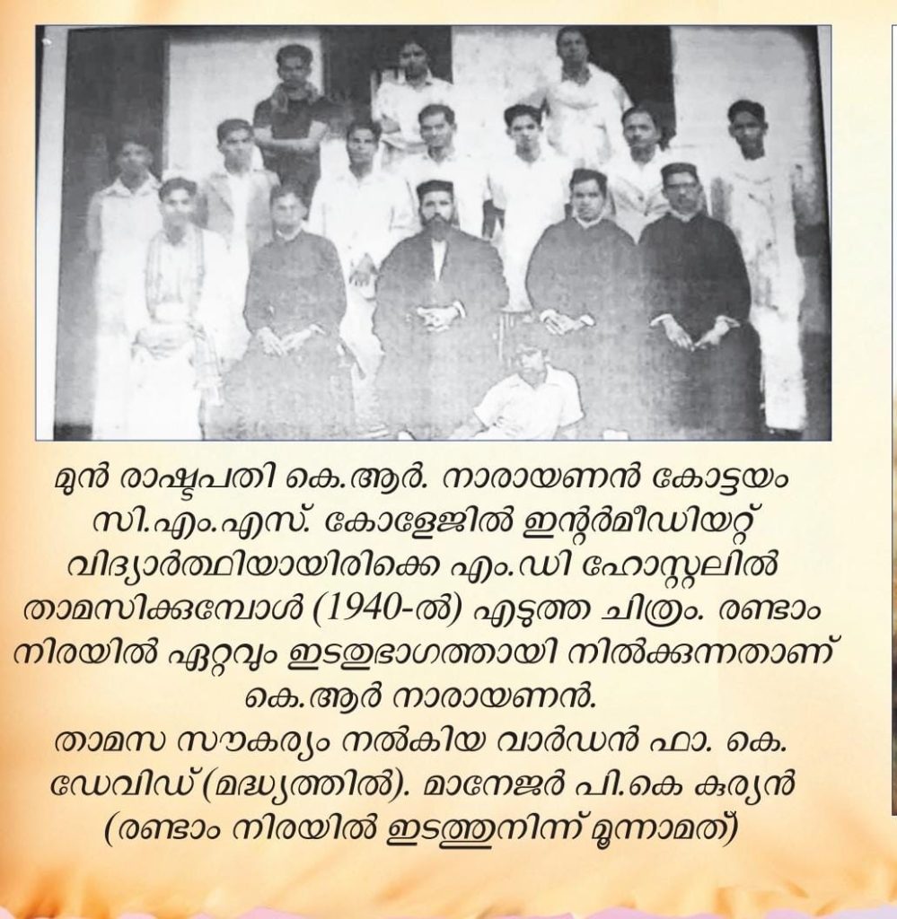 1923-ൽ കോട്ടയം എം.ഡി. ഹൈസ്കൂളിൽ അധ്യാപകനായി ചേർന്നു .അദ്ദേഹത്തിന്റെ അധ്യാപകജീവിതത്തിലെ ശ്രദ്ധേയമായ സംഭവങ്ങളിൽ ഒന്നായി, പിൽക്കാലത്ത് ഇന്ത്യയുടെ രാഷ്ട്രപതിയായ ഡോ. കെ. ആർ. നാരായണൻ എന്ന മഹാനുഭാവൻ കോട്ടയത്ത് സി.എം.എസ്. കോളേജിൽ പഠിക്കാൻ എത്തിയപ്പോൾ, താമസസൗകര്യങ്ങൾ ഒരുക്കിയതിലൂടെ കോർ എപ്പിസ്കോപ്പയുടെ കരുതലിന്റെയും മാനവികതയുടെയും ഉദാത്ത ഉദാഹരണം പതിഞ്ഞിരിക്കുന്നു. താൻ വാർഡൻ്റെ ചുമതലകൂടി വഹിച്ച കോട്ടയം എംഡി ഹൈസ്കൂൾ ഹോസ്റ്റലിലാണ് വിദ്യാർത്ഥിയായ കെ ആർ നാരായണനെ താമസിപ്പിച്ച് ,അദ്ദേഹം പഠന സൗകര്യം ഒരുക്കി നൽകി പ്രോത്സാഹിപ്പിച്ചത്.