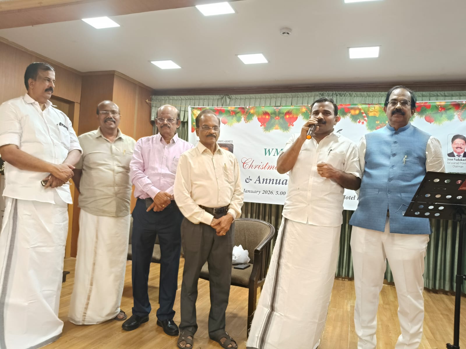 ത്യശൂർ : വേൾഡ് മലയാളി കൗൺസിൽ വെള്ളുവനാട് പ്രൊവിൻസിന്റെ നേതൃത്വത്തിൽ ക്രിസ്മസ് ന്യൂ ഇയർ ആഘോഷ പരിപാടികൾ സംഘടിപ്പിച്ചു, സമൂഹത്തിൽ ഉള്ള തെരുവ് നായ്ക്കളുടെ സംരക്ഷണം സർക്കാരും കോർപ്പേറേഷനും ഏറ്റെടുക്കണം എന്ന് വേൾഡ് മലയാളി കൗൺസിൽ വെള്ളവനാട് യോഗത്തിൽ അവശ്യപ്പെട്ടു. സ്ഥലം കിട്ടിയാൽ ഉടനെ നടപ്പാക്കാൻ ശ്രമിക്കാം എന്ന് കോർപ്പറേഷൻ മേയർ ഡോക്ടർ നിജി ജസ്റ്റിനും, ഡെപ്യൂട്ടി മേയർ എ. പ്രസാദും ഉറപ്പു നൽകി.