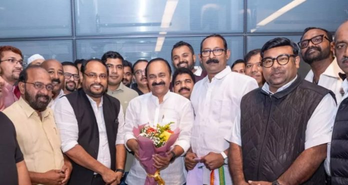 ദോഹ:പ്രതിപക്ഷ നേതാവ് വി.ഡി. സതീശൻ ഖത്തറിൽ. ജനുവരി 9ന് ഐഡിയൽ ഇന്ത്യൻ സ്കൂളിൽ നടക്കുന്ന ഖത്തർ ഇൻകാസ് കുടുംബ സംഗമത്തിൽ പങ്കെടുക്കാനാണ് ദോഹയിലെത്തിയത്. വി.ഡി. സതീശന് ഇൻകാസ് പ്രവർത്തകർ ഹമദ് ഇന്റർനാഷണൽ എയർപോർട്ടിൽ ആവേശോജ്ജ്വല സ്വീകരണം നൽകി.