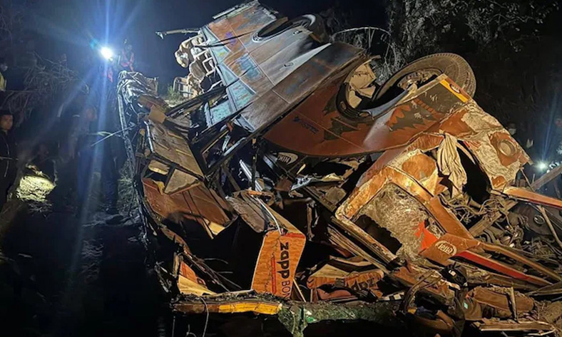 തീർത്ഥാടകർ സഞ്ചരിച്ച ഇലക്ട്രിക് മിനി ബസ് റോഡിൽ നിന്ന് തെന്നിമാറി കൊക്കയിലേക്ക് മറിയുകയായിരുന്നു. ബസ്സിൽ പന്ത്രണ്ടിലധികം യാത്രക്കാരുണ്ടായിരുന്നു. അപകടത്തിൽ പരിക്കേറ്റ ഏഴ് പേരെ ചിത്വൻ ജില്ലയിലെ ഭരത്പൂരിലുള്ള ചിത്വൻ മെഡിക്കൽ കോളജിലേക്ക് ചികിത്സക്കായി മാറ്റി. രക്ഷാപ്രവർത്തനം പുരോഗമിക്കുകയാണെന്ന് പൊലീസ് അറിയിച്ചു. അപകടത്തിന്റെ കൃത്യമായ കാരണം ഇതുവരെ വ്യക്തമല്ല. തീവ്രമായ ചെരിവുള്ള റോഡിലൂടെ സഞ്ചരിക്കുമ്പോഴാണ് വാഹനം അപകടത്തിൽപ്പെട്ടത്.